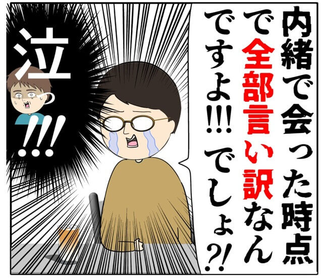 「ジュリ実に対して恋愛感情はない」と言いつつも、連絡先の交換や会っていた事実をめいに秘密にしていたことを責められるろみ緒。続けて「秘密にしていたのは下心があったから」「内緒で会った時点ですべて言い訳」とジュリ実の夫から泣きながら訴えられ、ろみ緒の立場はますます悪くなっていきます。