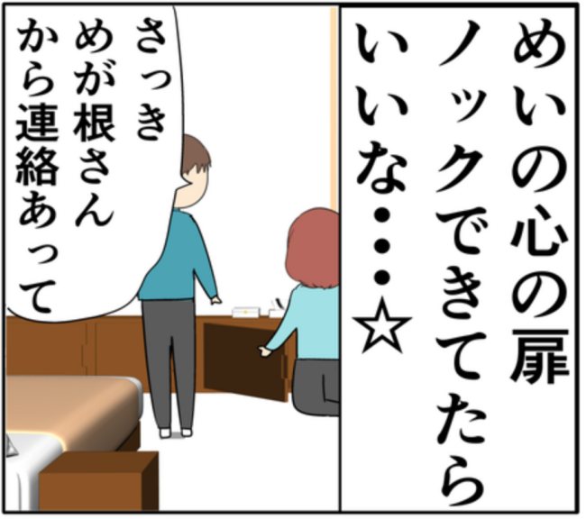 2人の密会のことはついにジュリ実の夫にもバレます。そこで、めいとろみ緒、ジュリ実とジュリ実の夫の4人で話し合いをし、「2人きりでは会わない」と約束。ただ、めいはろみ緒のことを信用できず、ひとまず、離婚届を書いた状態で様子を見ることに。