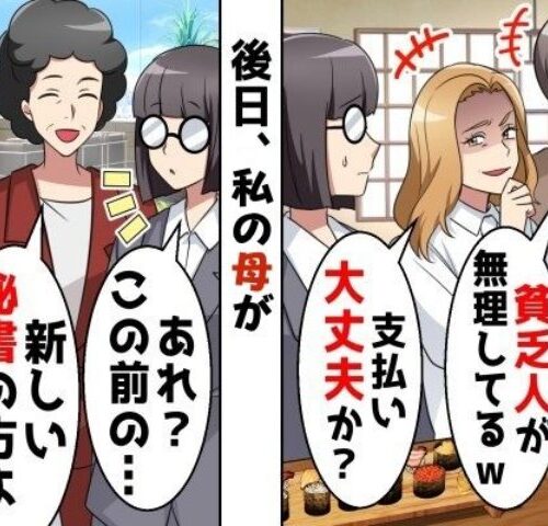 続きを読む私はとある企業に勤めるアラサー女子です。ここ数年は、プロジェクトのリーダーを任されるなど仕事も順調で、目標だった昇給も実現。そんなある日、自分へのご褒美として高級寿司店に行ったので...