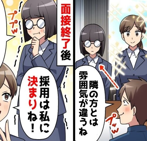 目次 1. 対照的すぎる面接スタート 2. 美人だけが主役!? 3. 静かな逆転 4. 積み重ねた実力 静かな逆転 面接が終わって廊下に出ると、A …