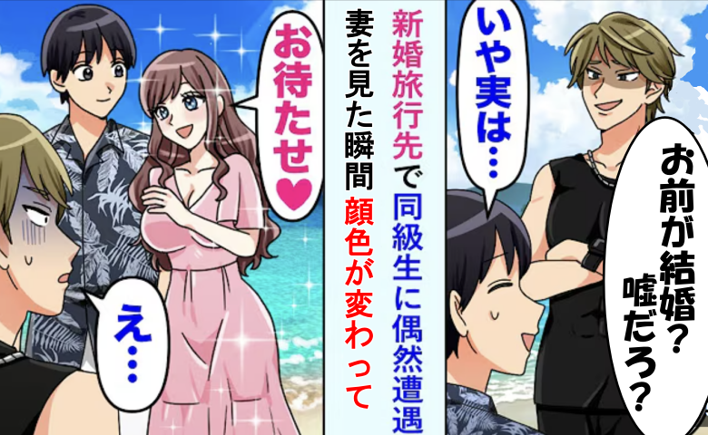 「お前が結婚?誰と(笑)」新婚旅行先で遭遇した同級生⇒妻の顔を見ると…?