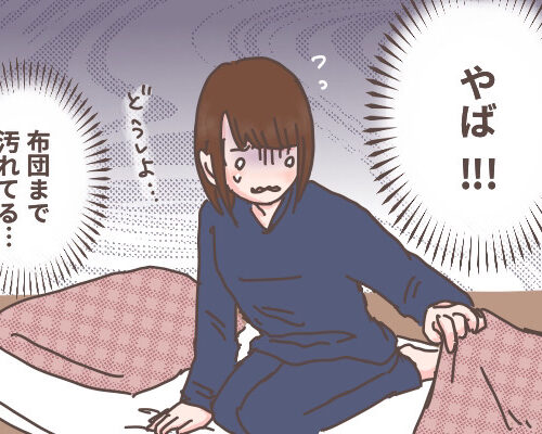 続きを読む大学生のころ、生理後半に大量の経血が出て、寝ている間に下着やパジャマのズボンだけでなく、布団まで汚してしまったことが! パニックになっていた私をよそに、その日泊まりにきていた彼の行...