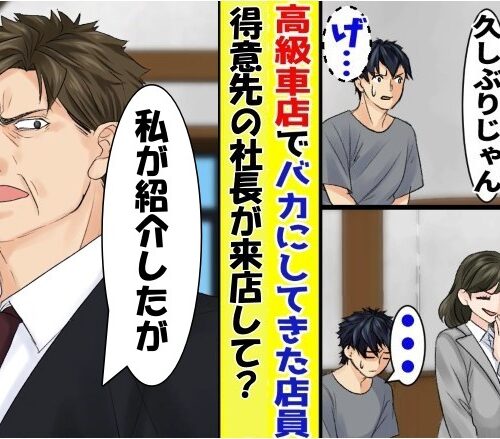 元同級生「高級店だから、高卒は帰りな(笑)」車を見に来た僕。帰ろうとすると声をかけてきたのは…?僕は自動車整備士の仕事をしたのち、自分で自動車関連の会社を立ち上げました。最初は大変でしたが、最近は軌道に乗り始めさまざまな企業とも取引ができるように。ある日、車を買いにディーラー... 続きを読む