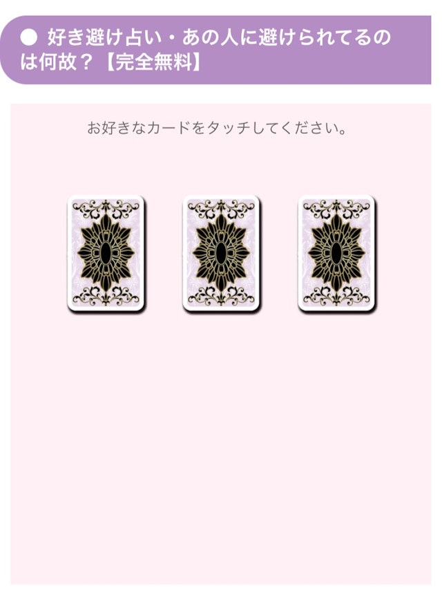 カードをシャッフルして並べられた3枚から1枚を選ぶと、以下についての鑑定結果が出てきます。