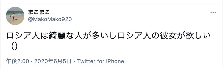 実際にSNSを見てみると、「ロシアの女の子と知り合いたい」「ロシア人女性と出会いたい」とツイートをしている人がいました。