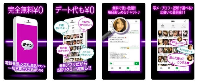 「逆ナン」はアプリの評価が怪しく、実態と異なる口コミが散見されます。