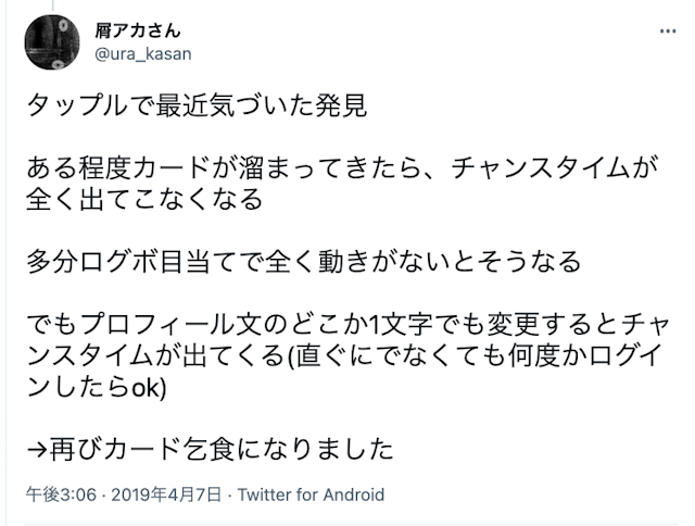 ⇒タップルのチャンスタイムが起こりやすい条件をもう一度チェックする!