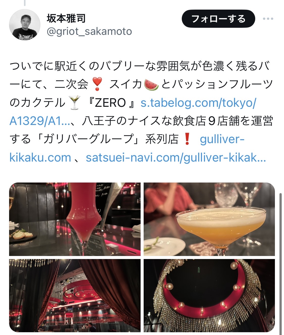 BAR&LOUNGE zeroは、「八王子駅」から徒歩3分のバーです。