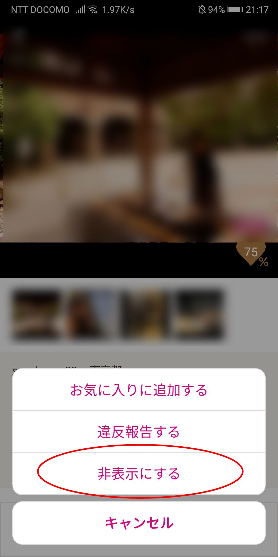 3つの項目が出てくるので、一番下の「非表示にする」をタップします。これで非表示完了です。