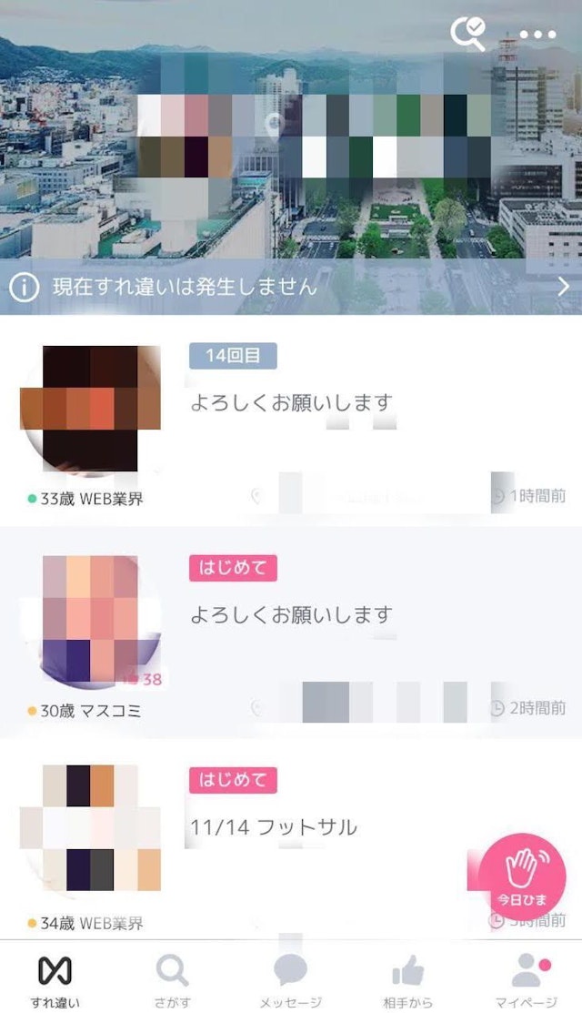 普段から多くの人とすれ違っている人ほど、この「今日ひま」機能は効果的です!