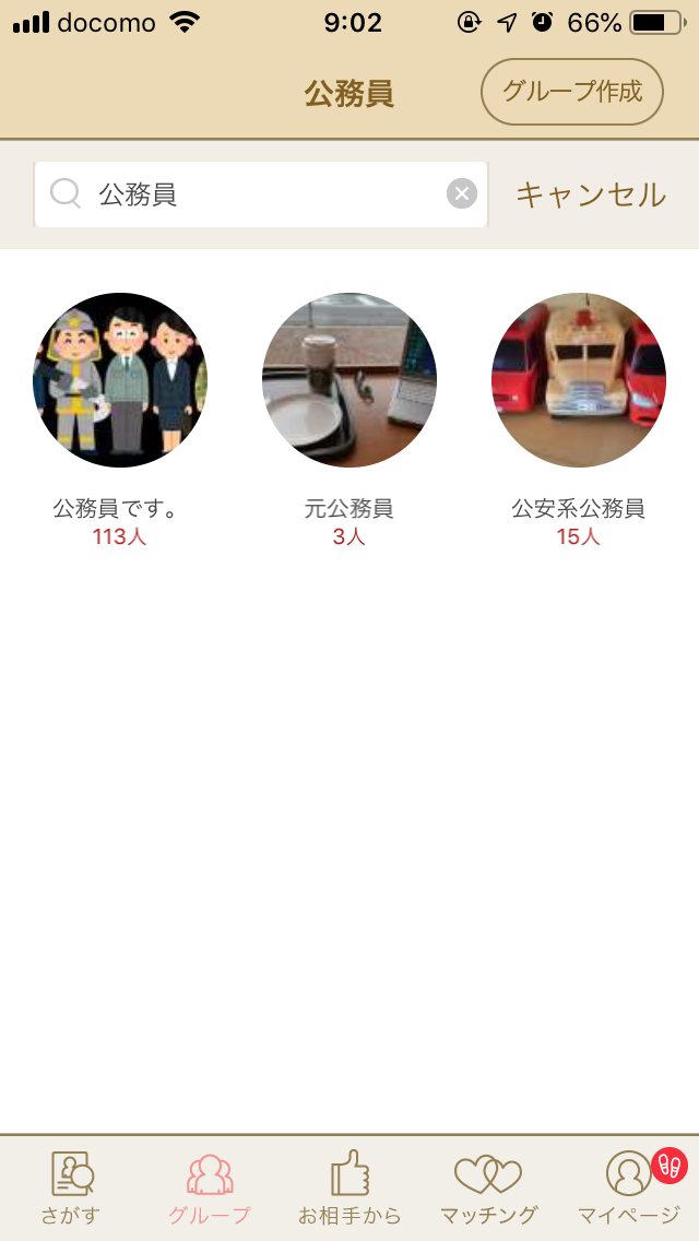 公務員と出会うためには、職業の検索機能が必要です。
